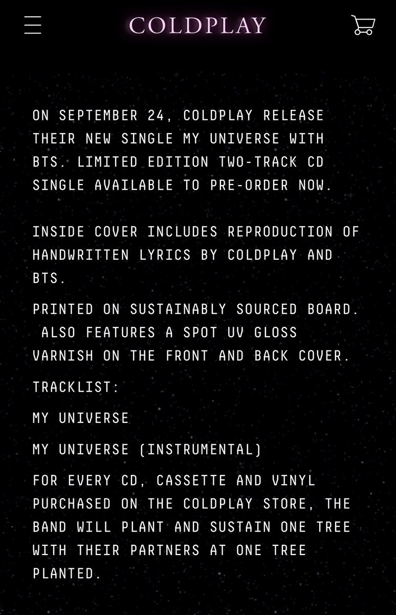 Bts Charts On Twitter My Universe Cd Single Is Available To Pre Order On Coldplay Store Https T Co Oazezqnvhn Weverse Pre Order Starts September 14th Https T Co D68ponkskr Https T Co J3ozud0wob